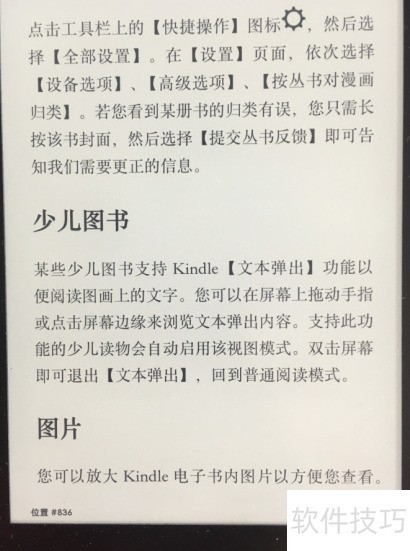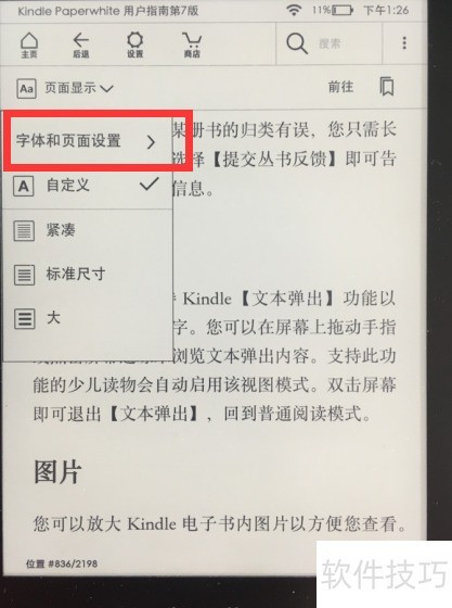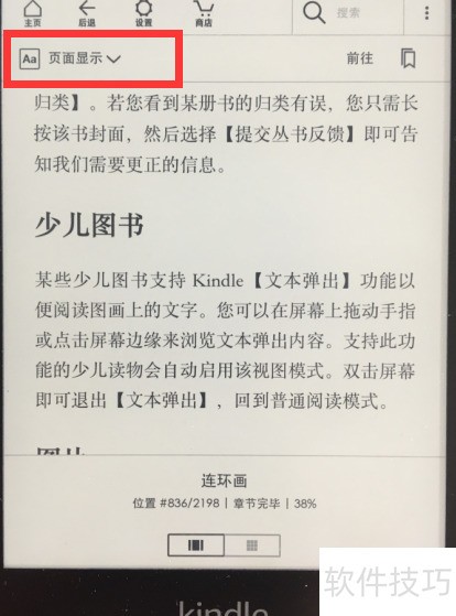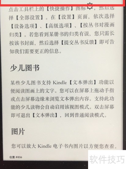 8、 开启Kindle,进入阅读界面,轻触屏幕顶部空白区域即可操作。