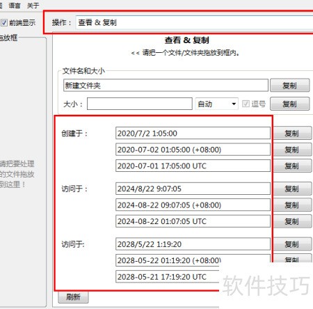 4、 将文件或文件夹拖至左侧框内,即可查看其相关时间属性信息。