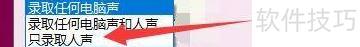 3、 在弹出菜单中选择录音模式,例如点击仅录制人声选项。