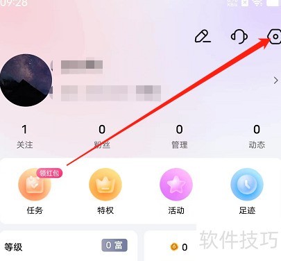 2、 进入安卓版六间房秀场个人主页,选择设置选项。