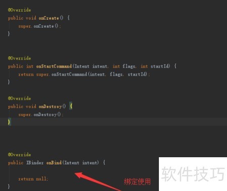 5、 使用bind方法时需重写onBind,通常通过继承Binder的内部类实现,并通过bindService完成服务绑定。