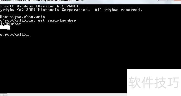 2、 输入bios get serialnumber命令后,即可查看到你的服务编号。