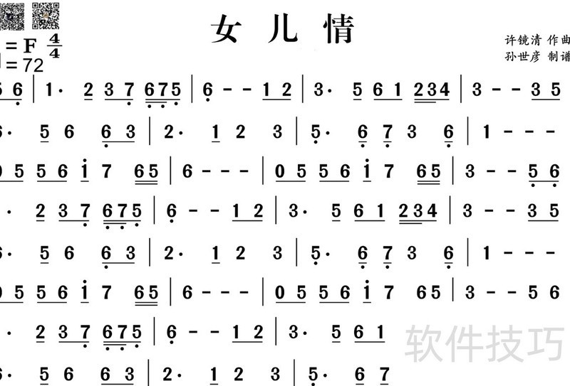 6、 简谱: