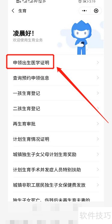 9、 进入申领出生证明页面