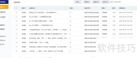 2、 支持单选、多选、填空、判断及问答等多种题型,可在题目中插入图片与音频;提供无限级分类管理试题;支持通过可视化界面添加题目,并可批量导入Word、Excel和TXT格式的试题模板,方便高效。