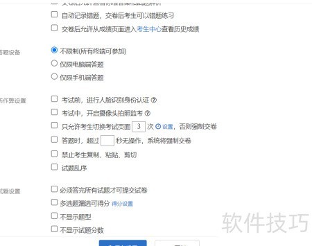 6、 考试设置包含防作弊措施,如考前人脸识别、考试中视频抓拍、题目随机排序、禁止切屏及复制粘贴等操作。
