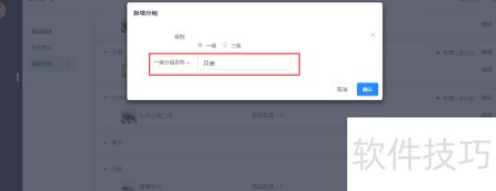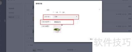 6、 选择已设的一级分组,输入二级分组名称,上传图片后点击确认即可。