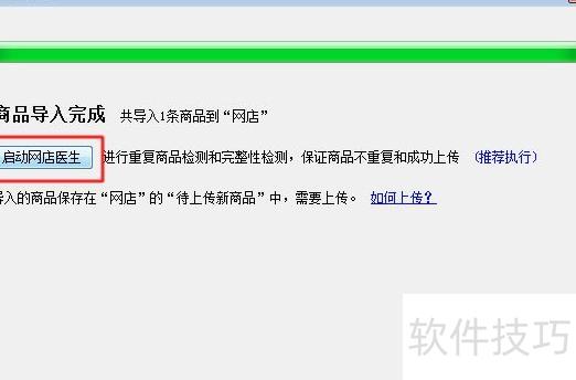 5、 导入后建议点击网店医生进行检测,以确保无误。若商品存在重复或问题,系统将给出相应提示。