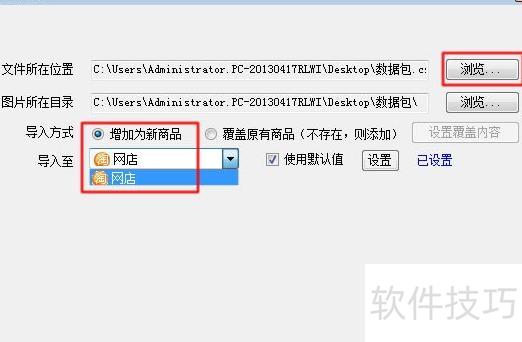 4、 可导入淘宝、拍拍或甩手掌柜的数据包,选择目标平台及网店,选定商品后即可完成上传与导入操作。