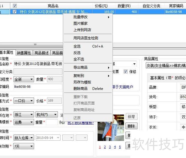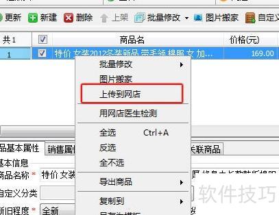 11、 选择商品后,鼠标悬停并右键点击,选择上传到网店即可完成操作。