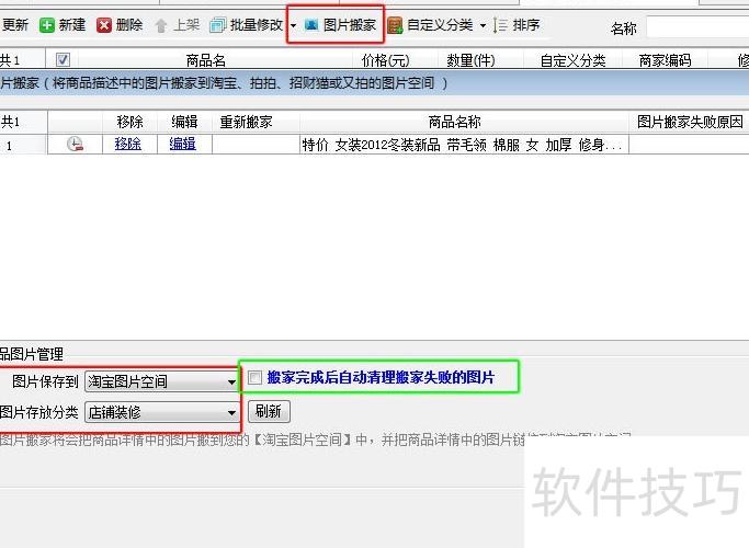 10、 选择图片搬家功能后,设定图片存储的分类与空间,并勾选搬家完成后自动清除失败的图片选项,随后点击立即搬家即可开始迁移。若出现搬家失败的情况,可尝试多次操作;如仍有无法迁移的图片,通常因原图存在问题,可选择跳过并直接关闭窗口。已使用数据包处理工具的用户无需进行此项操作。