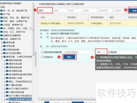 4、 可通过左侧手动选取税收分类编码,或在右侧输入名称进行搜索查询。