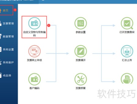 1、 进入首页,选择自定义货物与劳务编码功能。