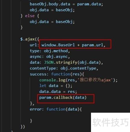 6、 已封装好Ajax,接下来介绍调用方法,调用时需注意参数字段的对应关系,与前述第三步内容保持一致即可。