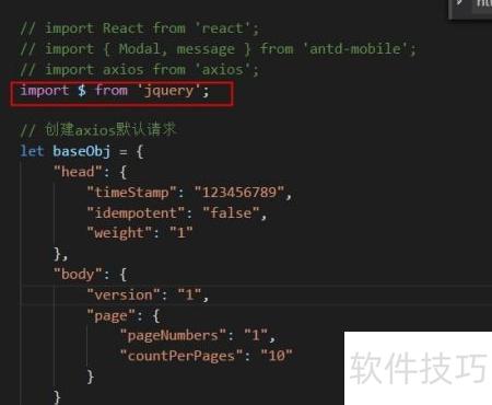 2、 接下来通过import语句引入jQuery库,以便后续使用其功能。
