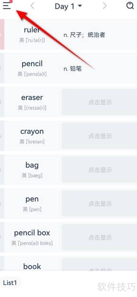 1、 启动炭炭背单词,点击左上角菜单按钮。
