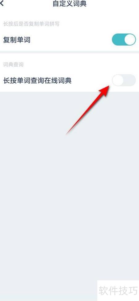 5、 关闭功能只需点击长按单词查询在线词典旁边的小滑块使其变暗。