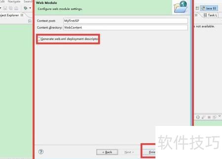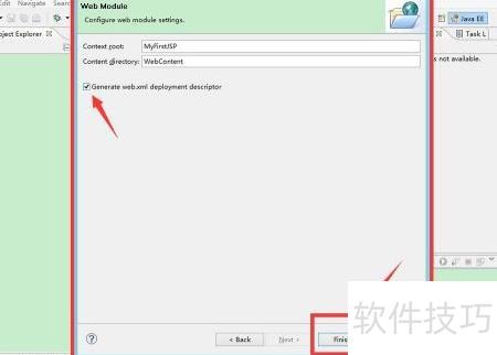 3、 一路点击下一步,具体含义不再赘述。最后一步时,建议勾选生成 web.xml选项,以便后续更方便地进行服务器配置操作。