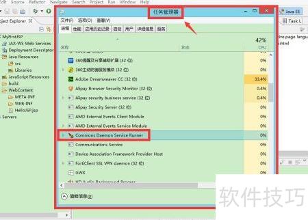 7、 运行时若出现错误提示,不必惊慌。常见原因是Tomcat服务端口被占用,通常是因为该服务已处于运行状态。此时可按下Ctrl+Alt+Delete键打开任务管理器,查找并结束正在运行的Tomcat进程,随后重新启动服务即可恢复正常运行,问题将迎刃而解。