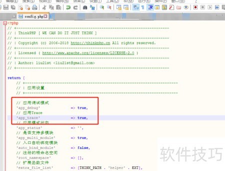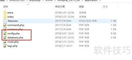 6、 application 是存放主要项目代码的应用目录。config.php 为系统主配置文件,通常无需修改。database.php 用于配置数据库连接信息,需根据本地测试环境调整数据库连接参数。