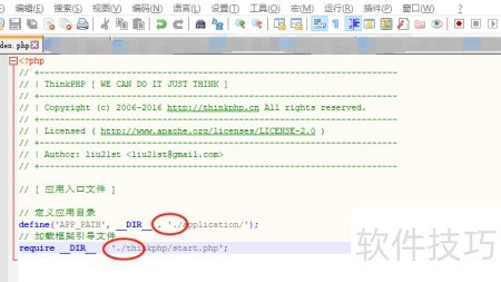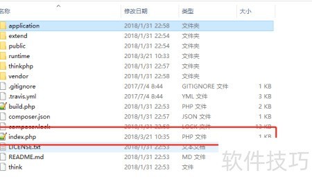 8、 可创建一个index.php作为入口文件,参照public-index.php示例,调整其中引用文件的路径即可。