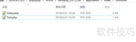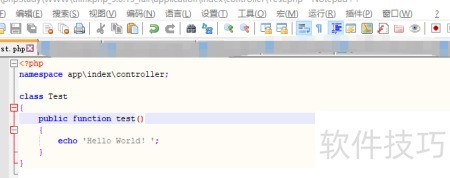 11、 开始开发功能模块,在index模块新增test控制器并编写test方法,通过指定路径进行访问测试。