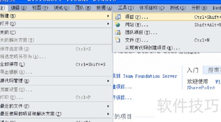 1、 打开VS2010,依次选择文件、新建、项目来创建新工程。