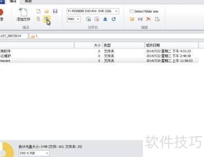 3、 软件可更新光盘中的数据内容,所示,用户可根据需求通过拖拽方式添加文件,或选中后按Delete键删除。但需注意,删除文件不会释放光盘实际空间,已删数据所占区域无法重复使用。在BurnAware界面左下角可查看当前可用的存储容量,便于掌握写入情况。