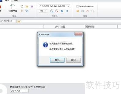 2、 如果光盘之前未使用BurnAware刻录数据,则无法识别其中内容;若此前正是用BurnAware刻录的,软件可自动识别并显示提示信息,此时只需参照图示选择是即可继续操作。