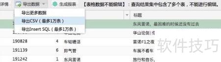 1、 从数据库筛选所需数据后,点击导出CSV功能进行保存。