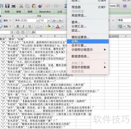 3、 用Excel打开刚保存的文件,数据会显示在一列中,选中该列后执行分列操作即可。