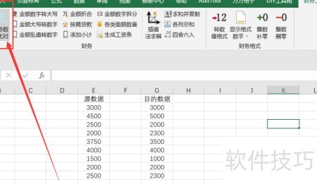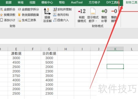 1、 打开Excel软件后,进入财务工具选项卡,可对表格中的财务数据进行对比分析,并按需导出所需信息。