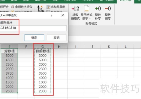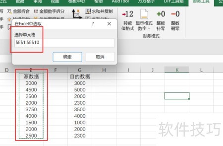 4、 选择财务数据对比选项卡后,弹出对话框,需依据其中提示选取相应的源数据区域。