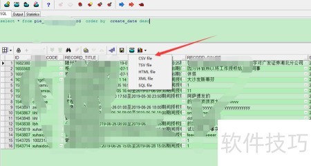 4、 导出数据时,若查询结果为多行且超出页面显示范围,需点击向下双箭头以展开全部内容。