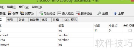 2、 学校字段,用于存储学校名称,数据类型为可变字符串,最大长度255个字符,允许为空。