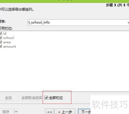18、 可自定义选择需导出的列,默认全选,按需勾选后点击下一步继续操作。