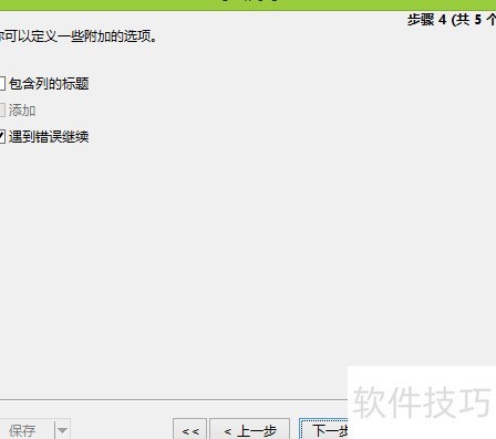 19、 设置附加选项,如标题包含列、错误处理方式等,完成后点击下一步继续操作。