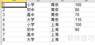 8、 向学校信息表中插入一条记录,编号为2,阶段为初中,位于南京,招生人数80人。