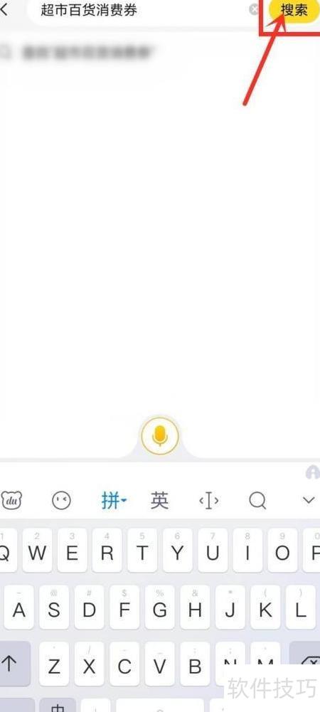 7、 在搜索栏中输入超市百货消费券,点击右侧的搜索按钮进行查找。