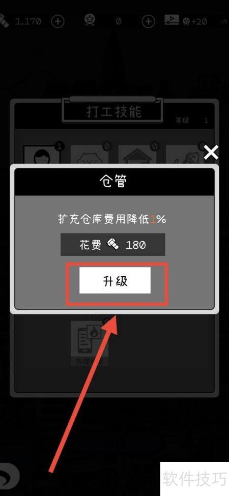 1、 进入游戏主界面,选择并点击打工技能选项。