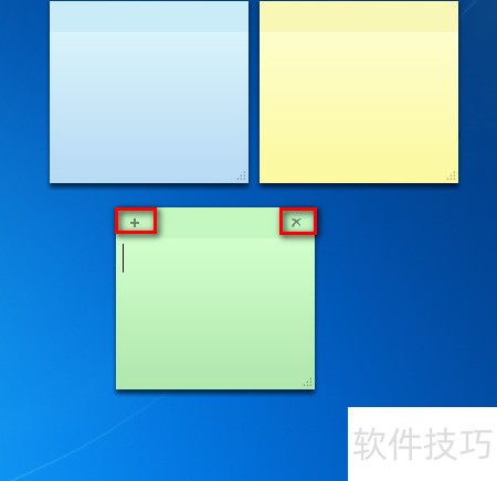 3、 点击标题栏左侧的+可创建新便笺,右侧×用于删除当前便笺。右键空白处可更改颜色,按住标题栏可拖动位置,拖拽边缘则能调整便笺大小,操作灵活便捷。