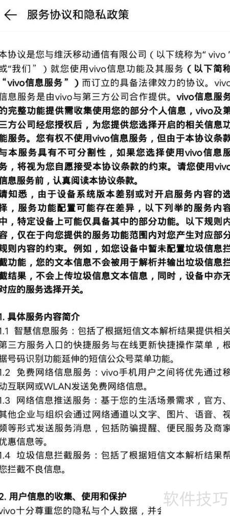 分享vivo手机查看短信服务协议与隐私政策的操作步骤,帮助用户快速了解相关条款内容。