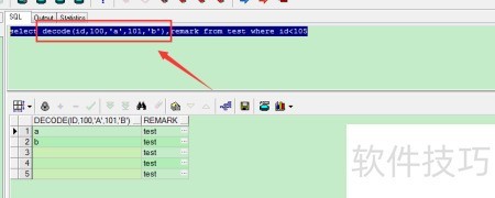 3、 现需将ID为100和101的数据分别更改为a和b,可借助decode函数实现该操作,具体方法所示。