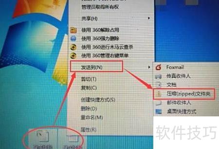 2、 选中两个文件,右键点击发送到并选择压缩(zipped)文件夹,系统将生成一个压缩包,而原始文件仍保留在原位置。