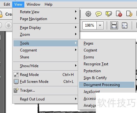 2、 进入视图菜单,选择工具,然后点击文档处理功能即可。