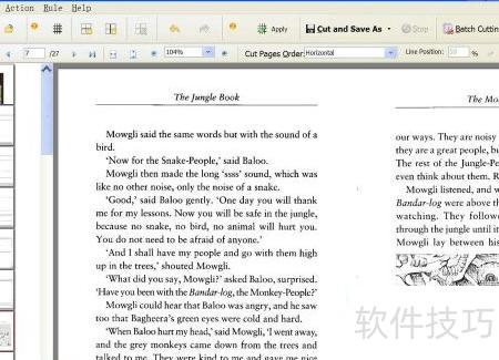 2、 下载并安装A-PDF Page Cut,启动后打开需分割的文件,操作所示。