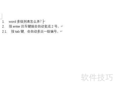 3、 按下回车键自动变为2号,按Tab键则自动增加一级编号。