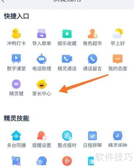 4、 进入家长中心后,点击底部的精灵代说功能。