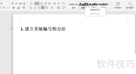 1、 创建文档,开启多级编号设置
