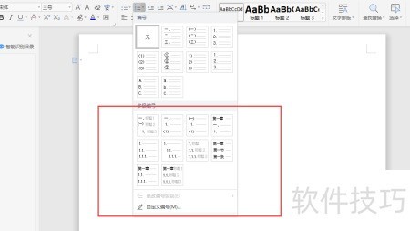 2、 新手可直接选用预设的多级编号模板。
